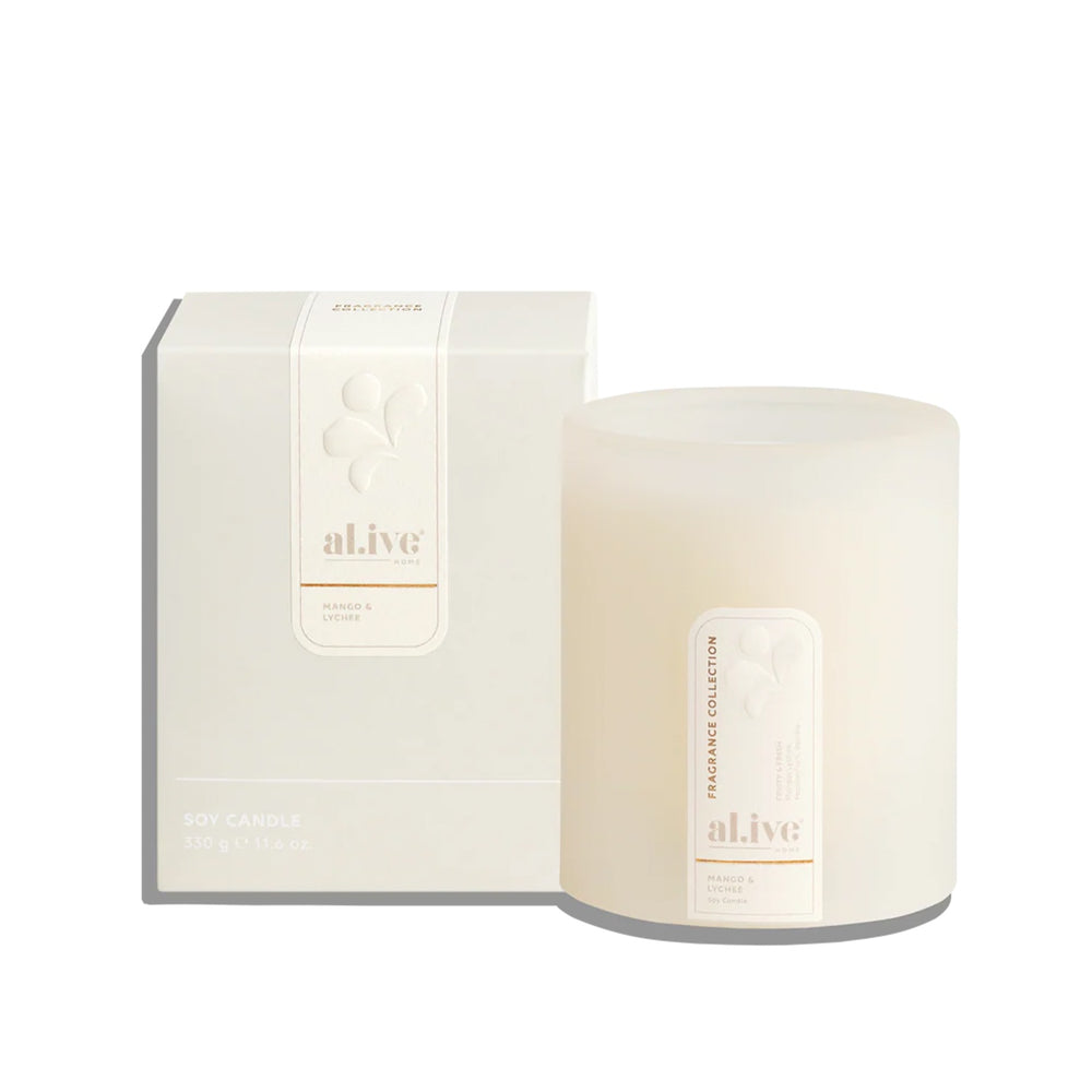 An energising Soy Candle featuring sun-ripened mango and exotic lychee, softened by delicate jasmine and creamy vanilla. This vibrant tropical fragrance brings natural warmth to your space.