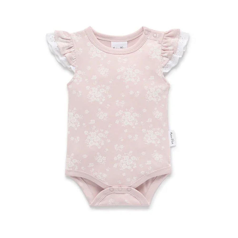 Designed with delicate charm and everyday comfort in mind, our Eve Floral Onesie features contrasting white florals over a soft rose palette and is finished with sweet ruffles and lace for elevated style.