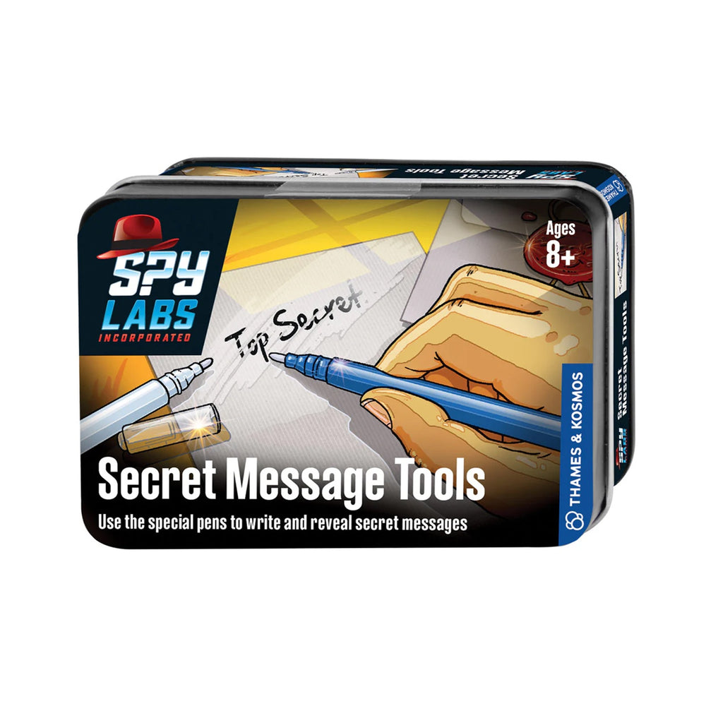 Exchange confidential messages with your fellow agent using disappearing and reappearing ink that only the two of you can read! Using either of the two secret pens, you can write a message that, once dry, becomes invisible. The other pen will not only reveal the information, but you can also use it to send your reply.