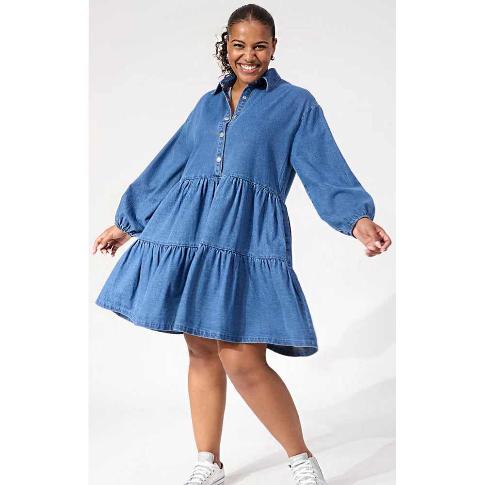 A feel-good denim dress featuring a softly tiered skirt that adds beautiful flow and shape, making it perfect for days when you want something easy but feminine. Crafted in mid-weight denim with a button-through bodice and gentle gathering through the skirt, it's flattering, comfortable and super charming.