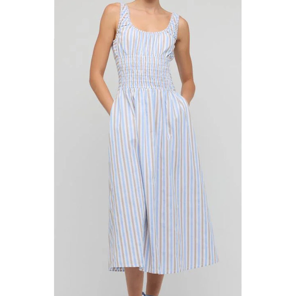 Dress Marcella Shirred Midi - Blue & Brown Stripe