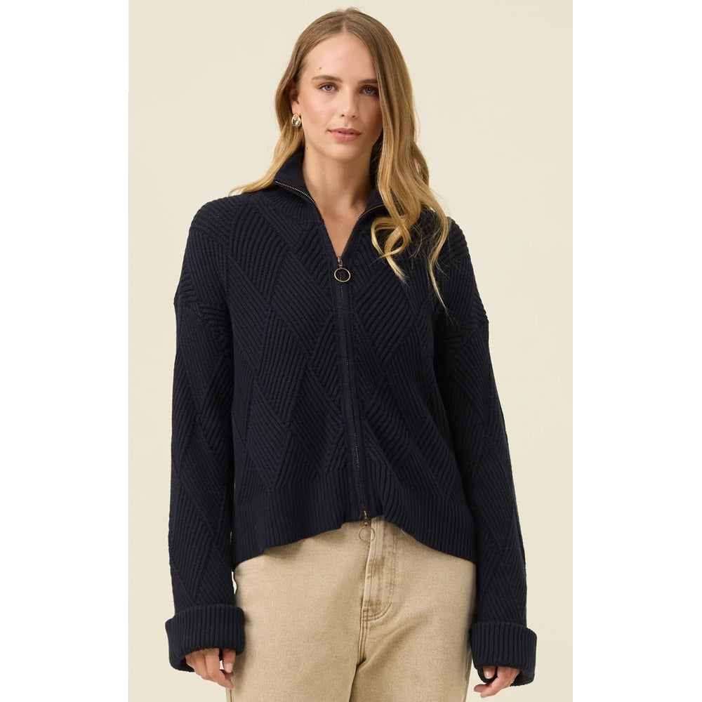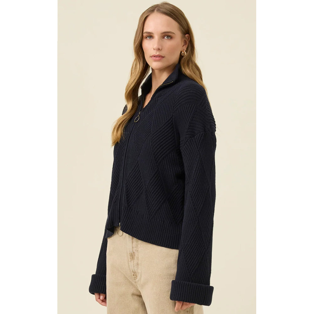 Wear half-zipped with the Sadie Knit Pant or team with denim for relaxed winter dressing.