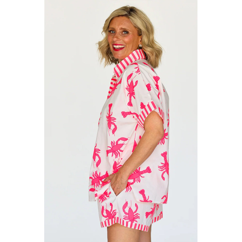 Make a statement this summer with our Lobster Twin Set — a must-have for every fashion lover! Crafted from 100% cotton poplin, this lightweight set is designed for comfort and style. The bright neon pink lobsters add a playful pop of colour that’s guaranteed to turn heads.