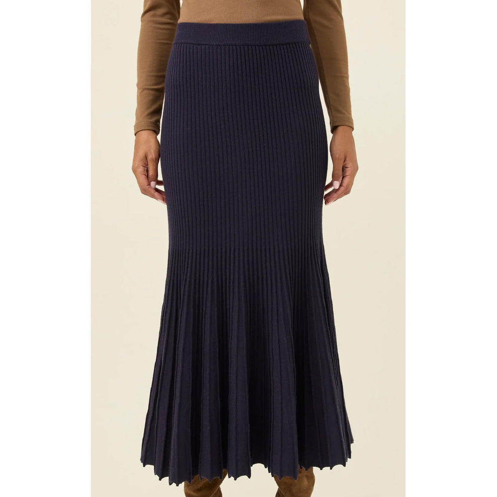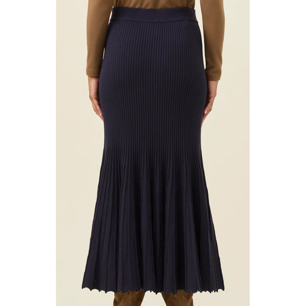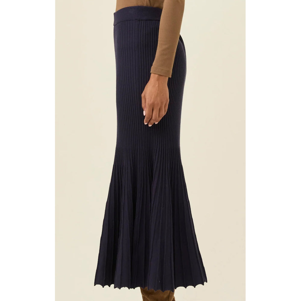 A soft ribbed knit skirt with a lightweight drape and a gentle fishtail shape that moves as you walk. The elasticated waistband keeps it comfortable for everyday wear, making it an easy base for winter layering.