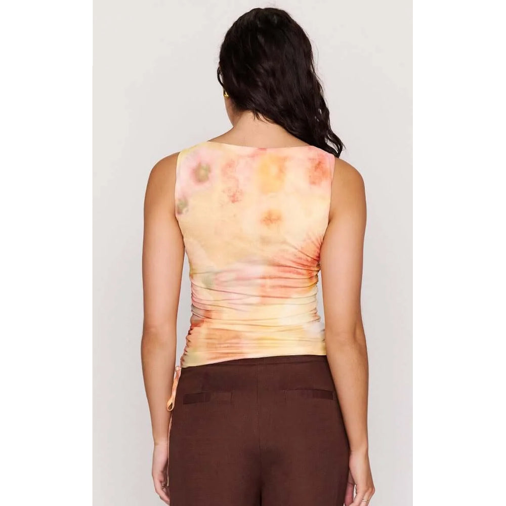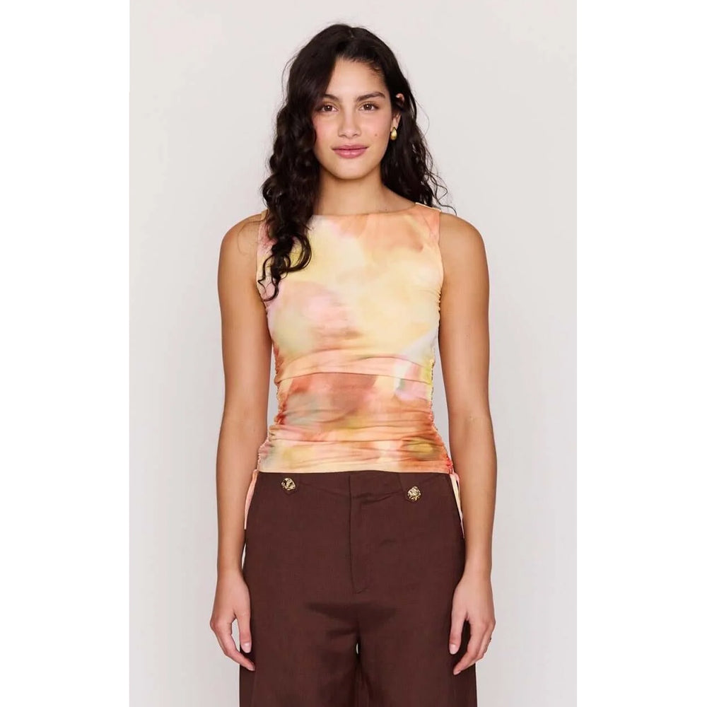 The Aria Sunset Tonal Drawstring Mesh Top is your go-to for elevated day-to-night styling. Crafted in a soft, stretch mesh with a dreamy sun-washed print, this fitted sleeveless top features adjustable side drawstrings to customise the length and ruching. Designed to hug the body while remaining lightweight and breathable, it’s perfect styled back with tailored pants, denim or a sleek mini. Effortless, flattering and endlessly wearable.
