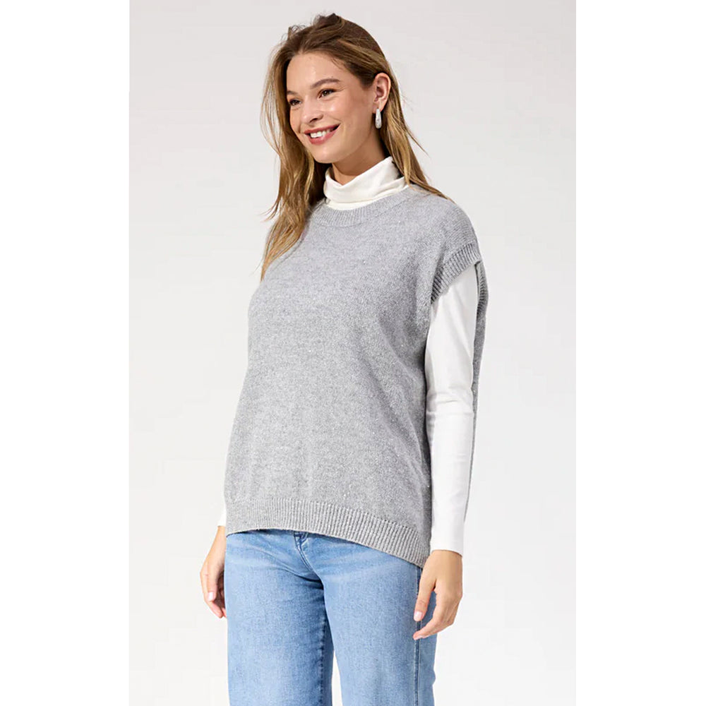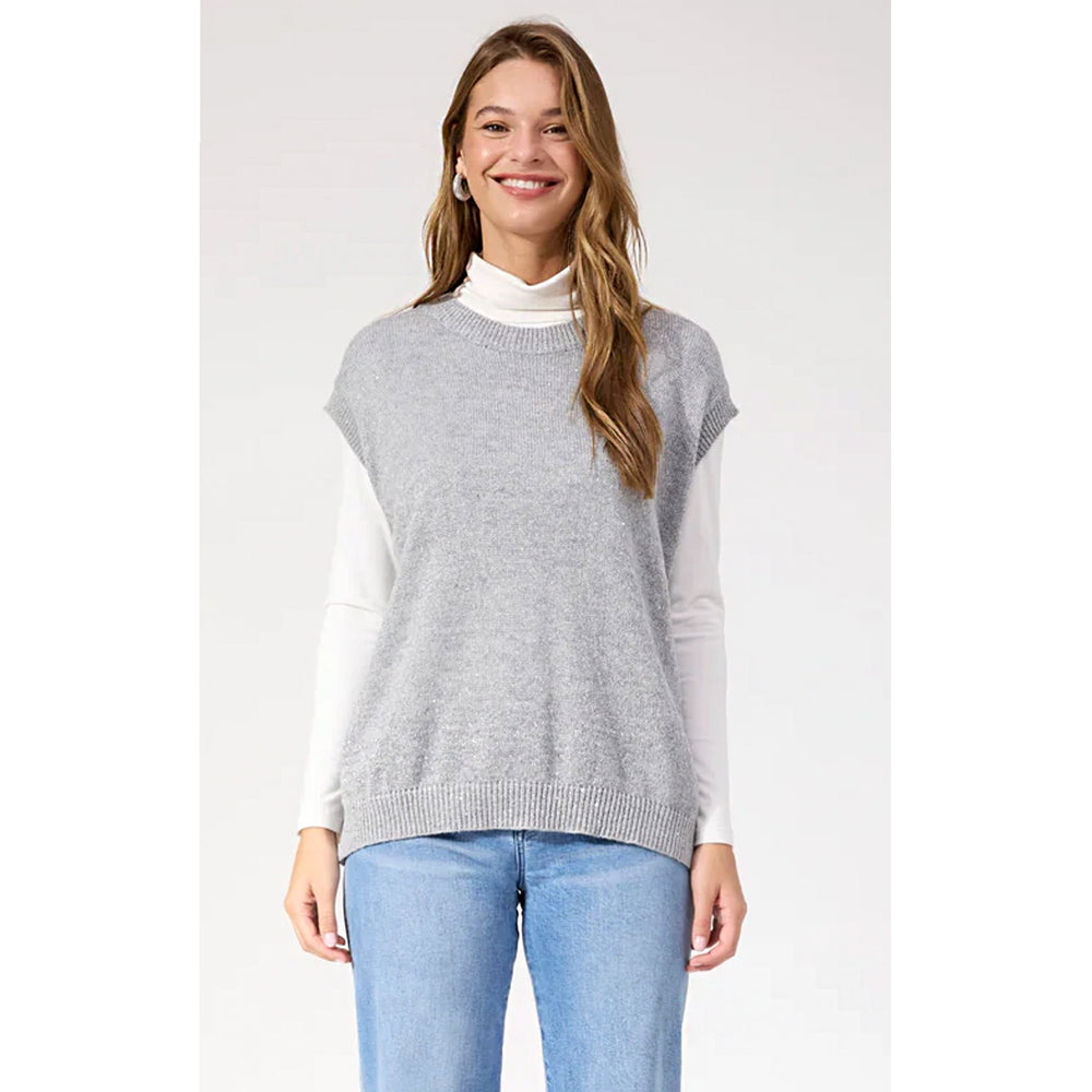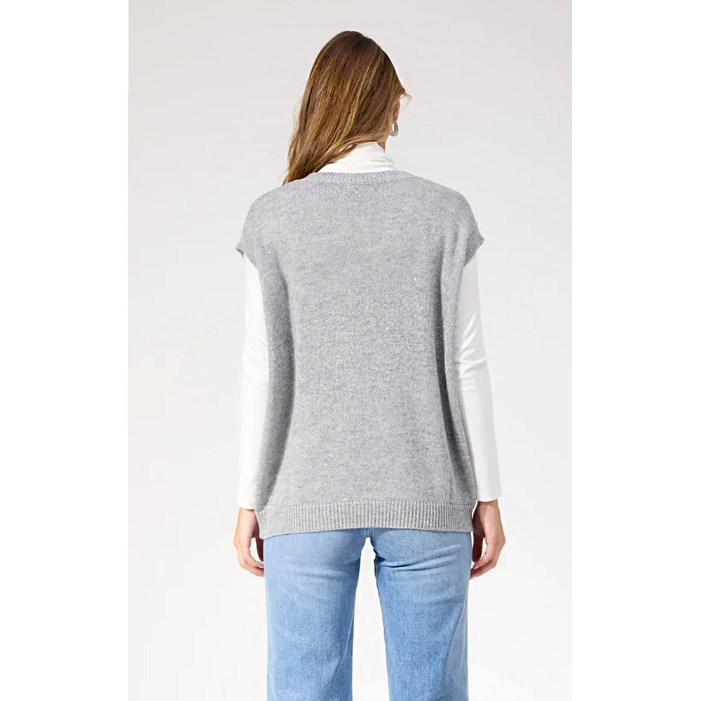 A little sparkle goes a long way. The Salla Sparkle Vest features a soft wool-blend knit with subtle lurex threading and micro sequin detail woven through the yarn. Designed with a relaxed shape and extended shoulders, it layers beautifully over shirts or looks just as good worn solo.