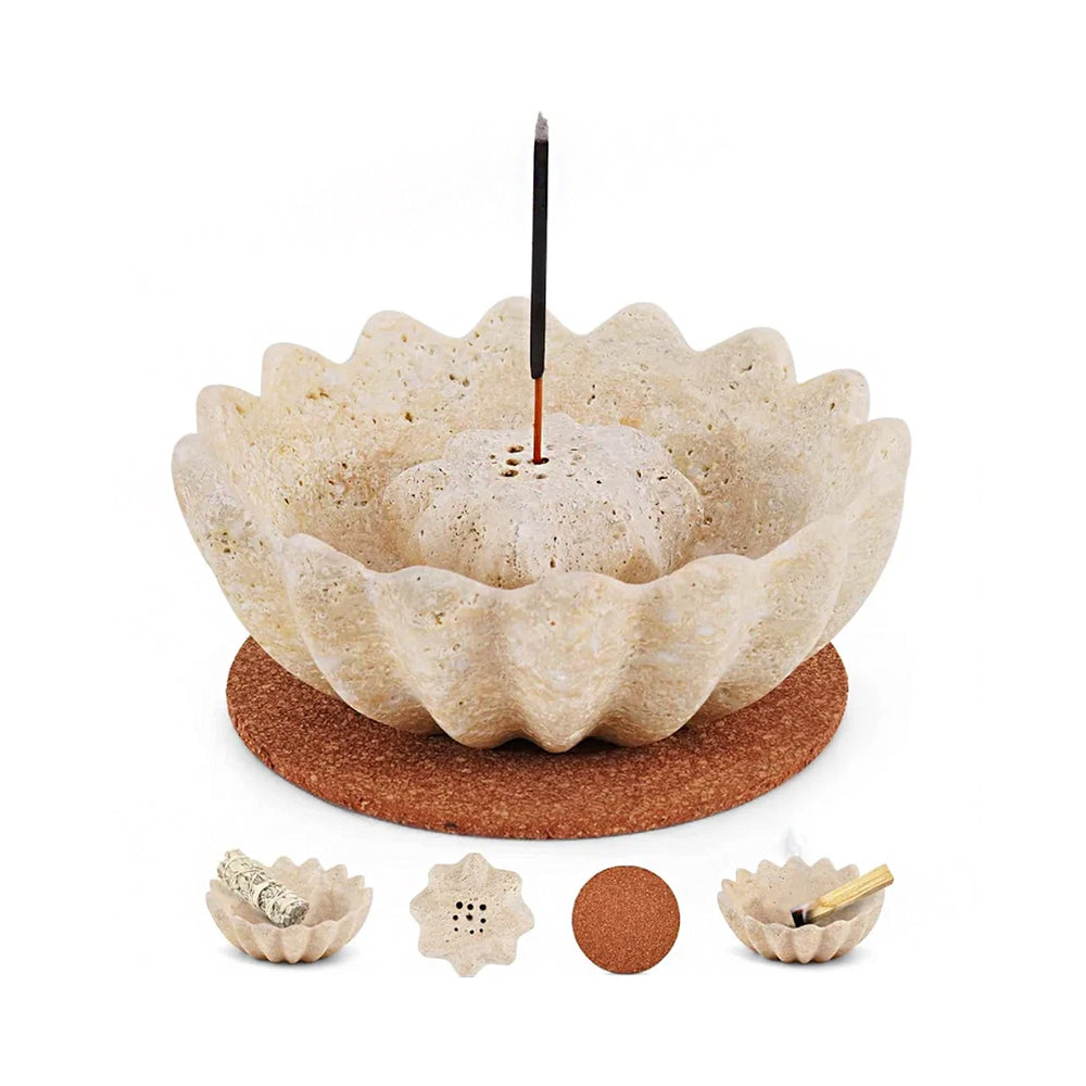 Modular 3-Piece Set: Includes a scalloped bowl, a multi-hole incense holder, and a heat-resistant cork base.