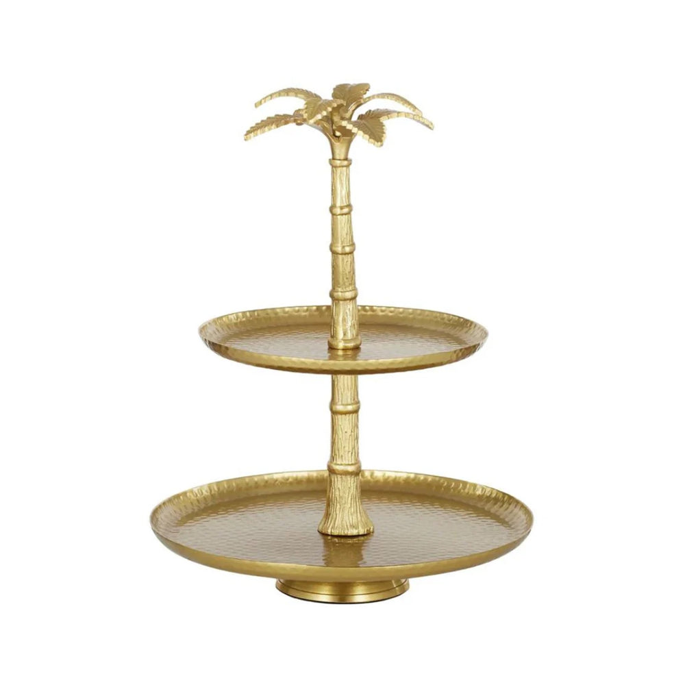 Transform any gathering into a display of elegance with the Palm Metal 2-Tier Serve Stand. Crafted from high-quality metal with a luxurious golden finish and cute palm tree, this serve stand measures 28x38 cm, making it the perfect centrepiece for your next event. Whether you're serving delightful pastries, fresh fruits, or savoury appetizers, the Kona Stand combines functionality with a sleek, contemporary design.