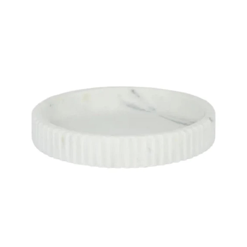 The Mara Marble round marble tray is finished with a chic ribbed detailing that makes it a stylish addition to any home decor.