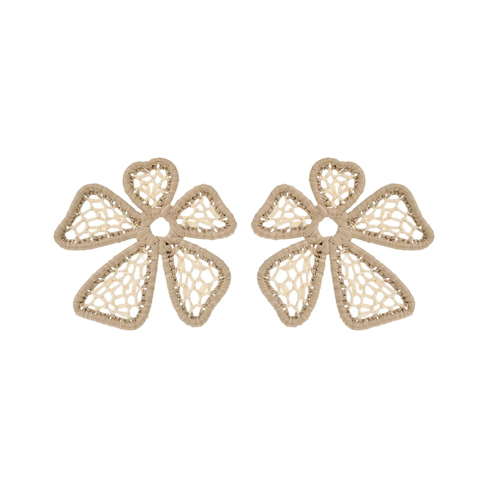 A bold, sculptural earring with woven texture and organic form. Designed to make a statement while remaining lightweight.