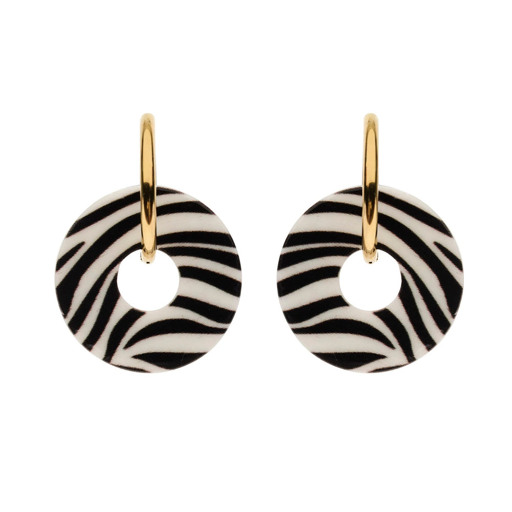 A modern huggie-style earring finished with a statement resin disc. Compact yet impactful, designed for easy day-to-evening wear.