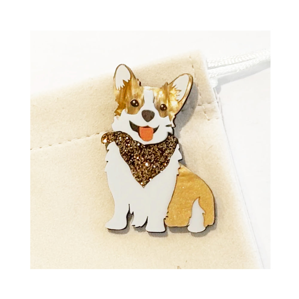 Notoriously the Queen's favourite dog breed, this fabulous Corgi lends his sophisticated style and cheeky look to adding a little extra something to all those classy fashionistas! With a gold sparkly nerck scarf, and a charming face, Ralph as a brooch will pop and be an eye-catching feature.