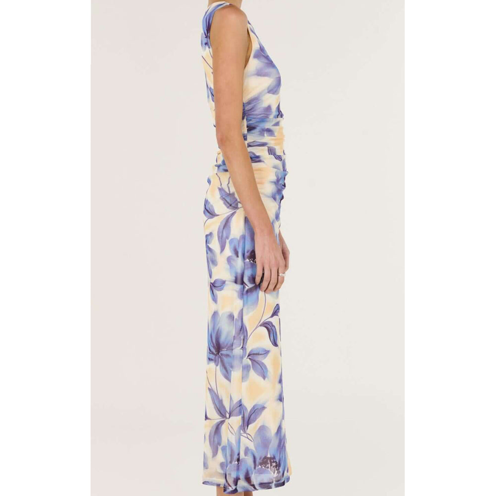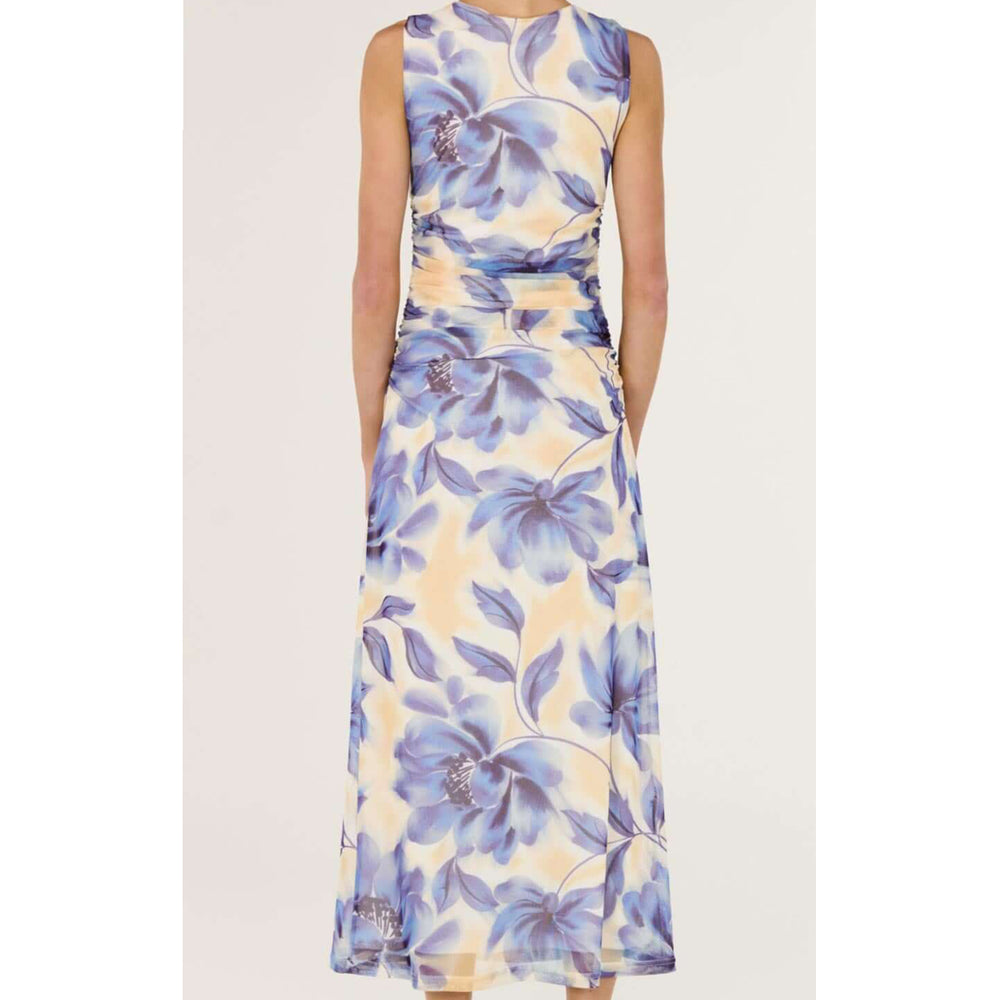 The Fleur Blue Blurred Floral Mesh Midi Dress is a refined statement style featuring a soft blurred floral print and a flattering, body-skimming silhouette. Crafted from stretch mesh with gentle ruching through the waist, it offers a smooth, comfortable fit designed for effortless event and occasion wear.