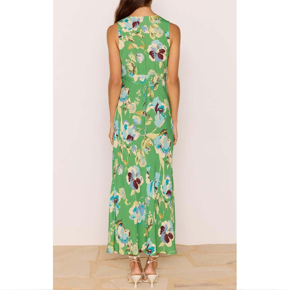 MINKPINK - Zoe Midi Dress - Green Floral Bias V-Neck Midi Dress