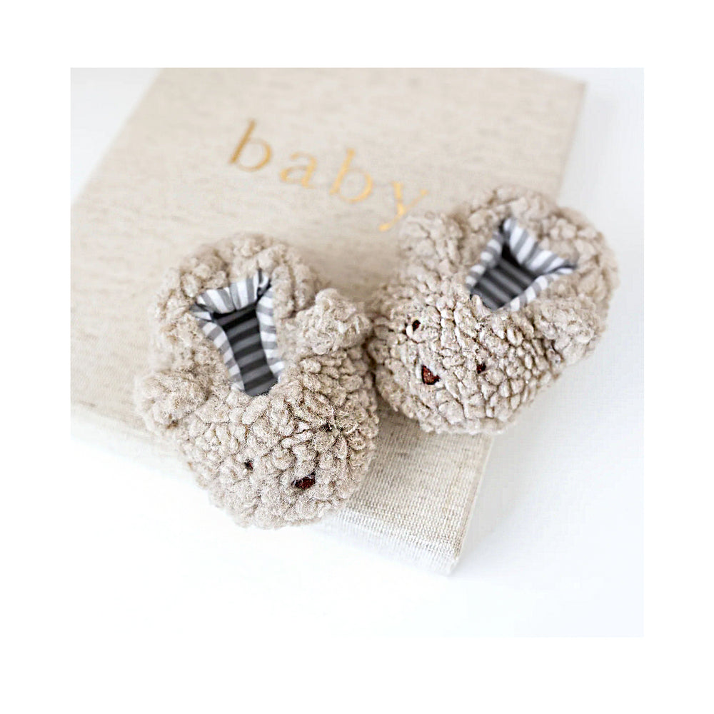 A cute pair of sherpa bear booties. Super soft & cute!  For 0 - 6 months. Measuring 12cm long with an encased elastic opening.