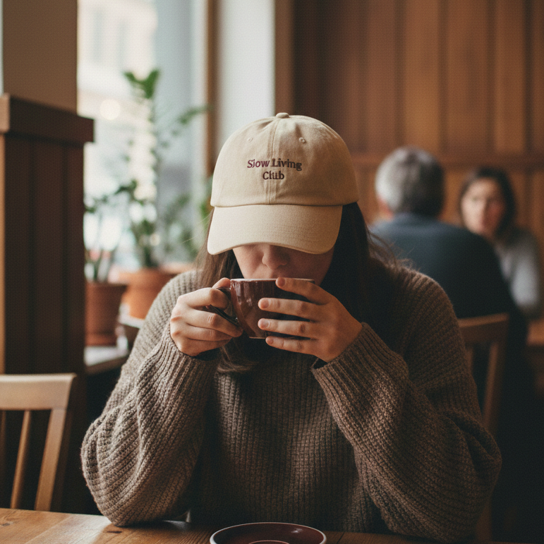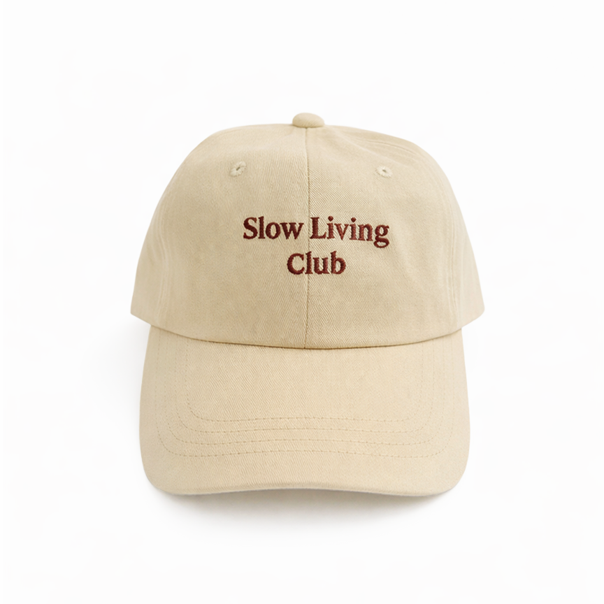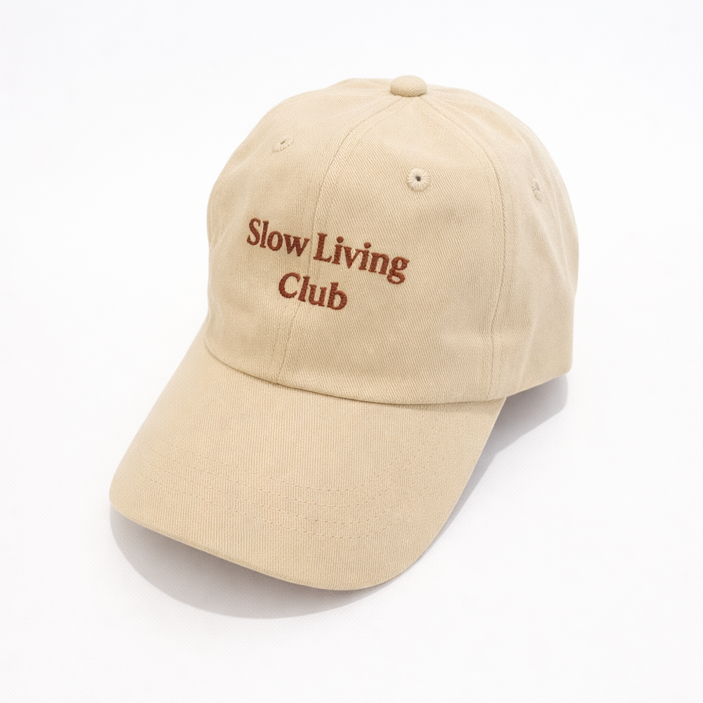 Designed for mindful mornings and unhurried rituals, the Slow Living Club cap comes in a versatile, sandy beige that pairs perfectly with your favorite neutral linen. Made from 100% cotton, it’s soft enough for a sunrise walk but structured enough to hold its shape through a long day at your favorite cafe. This is the cap for those who value the pause—an essential accessory for your weekend coffee run or a quiet stroll through the park.
