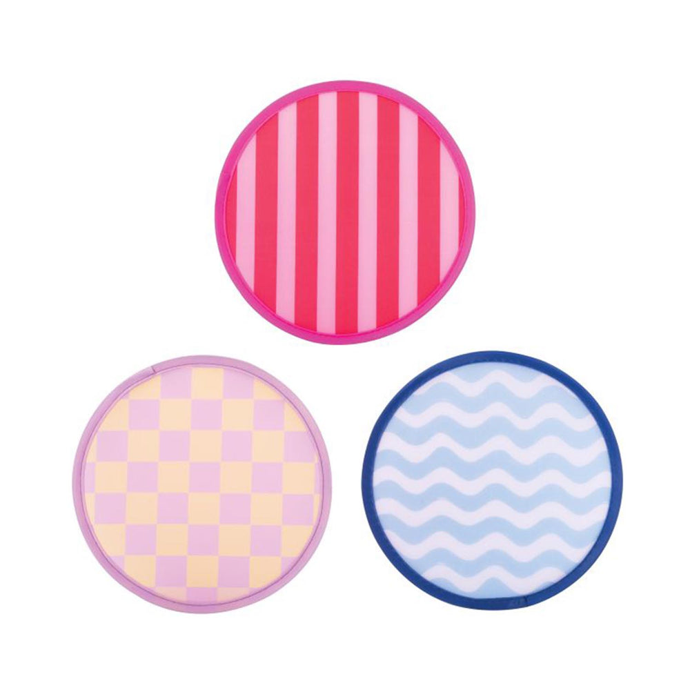 This compact and handy fan is simple to use and comes in 3 assorted designs.