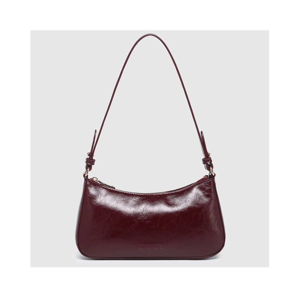 The Jacqueline Burgundy Patent Shoulder Bag is where function meets finesse. A classic shoulder bag crafted from lustrous crinkle patent vegan leather, she embodies modern polish in a sleek, structured silhouette. Designed with versatility in mind, Jacqueline Burgundy Patent features two interchangeable straps, transforming effortlessly from shoulder bag to crossbody, one of the most refined crossbody bags for women. Compact yet considered, she slips neatly into your workday tote, ready to take you from desk to dinner with quiet sophistication. Finished with a secure zip closure and softly structured form, she transitions seamlessly from office hours to off-duty moments. Timeless in form and modern in attitude, she’s the perfect blend of polish and practicality. Pair her with the Riley Tote Bag for the perfect balance, Riley for the 9–5, Jacqueline Burgundy Patent for everything after.