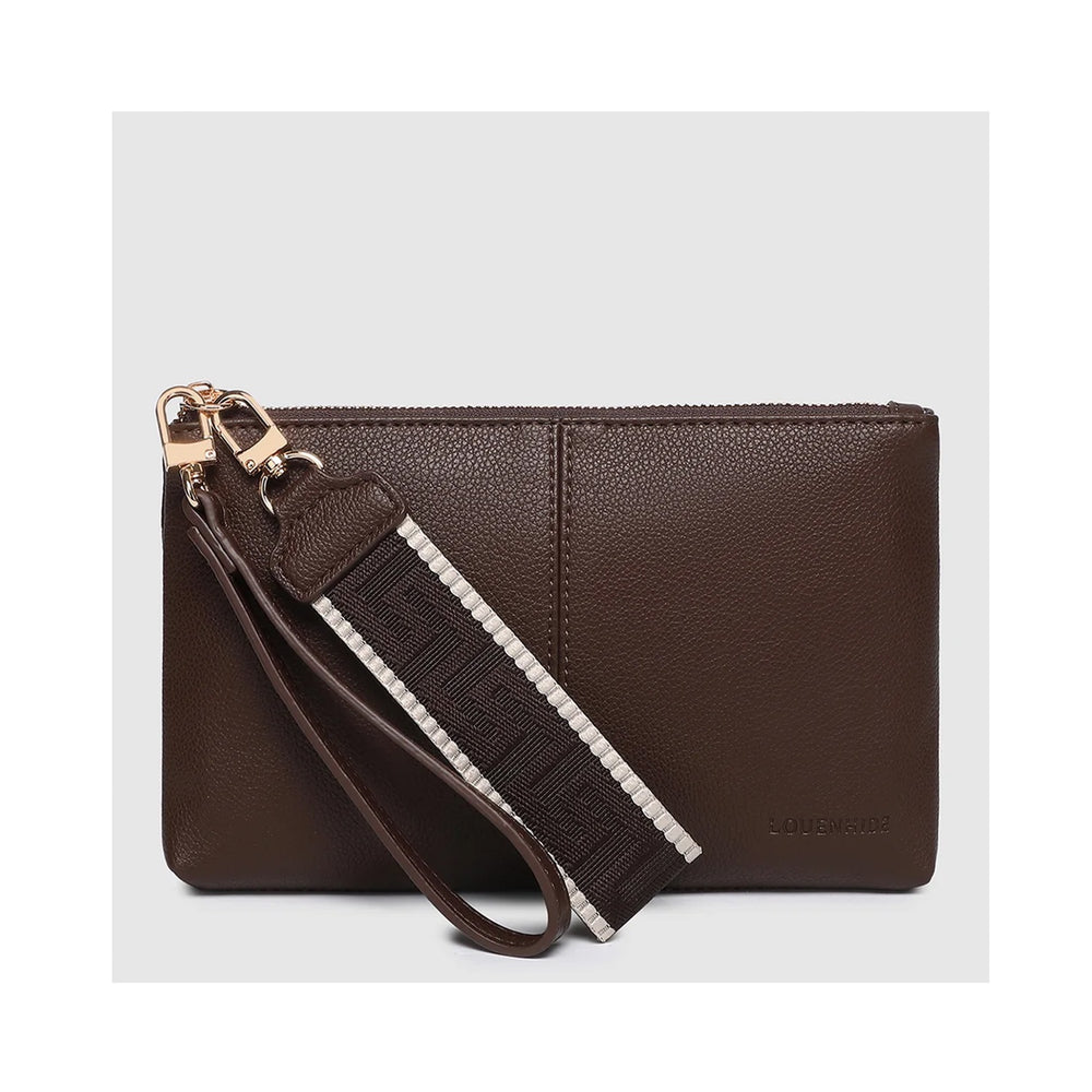 The Mimi Chocolate Clutch is a versatile staple designed to take you seamlessly from day to night. Crafted from smooth vegan leather in a compact silhouette, she’s finished with two wristlet options - a casual webbing strap for everyday wear or a matching vegan leather strap to elevate evening looks. Despite her streamlined design, Mimi offers thoughtful organisation with an internal zip pocket, external zip pocket, and internal card slots to keep your essentials secure and close at hand. Equal parts practical and polished, she’s the perfect clutch to complement any occasion.