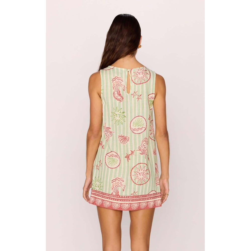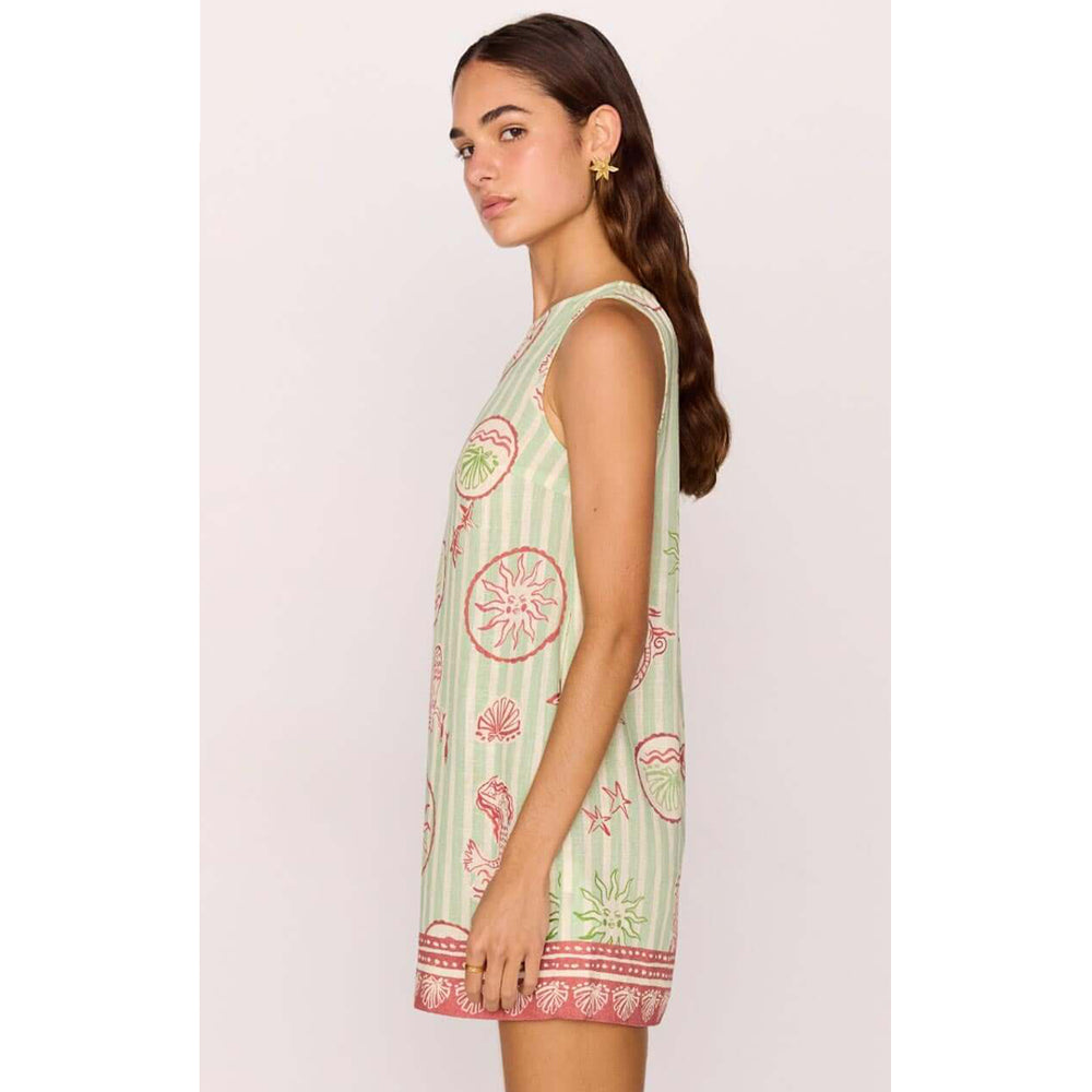 A beach-to-bar essential, the Soleil Linen Blend Green Stripe Printed Shift Mini Dress is crafted from a breezy linen-blend and features MINKPINK’s exclusive coastal motif print. With its relaxed silhouette and easy, throw-on design, this mini is made for sunny days and seaside adventures.