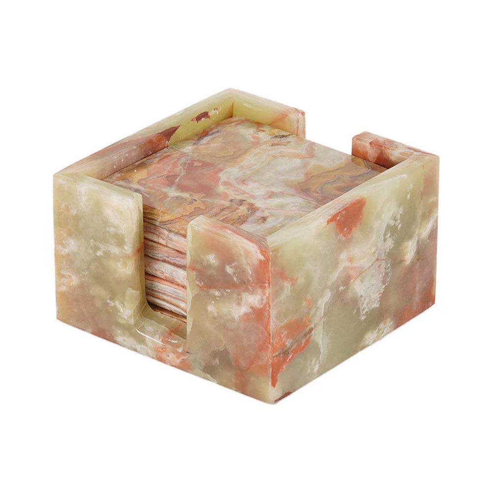 MARBLE COASTER SET SQUARE - TRAVERTINE