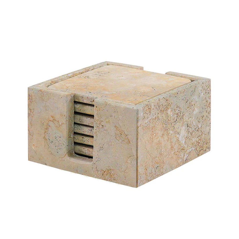 MARBLE COASTER SET SQUARE - TRAVERTINE