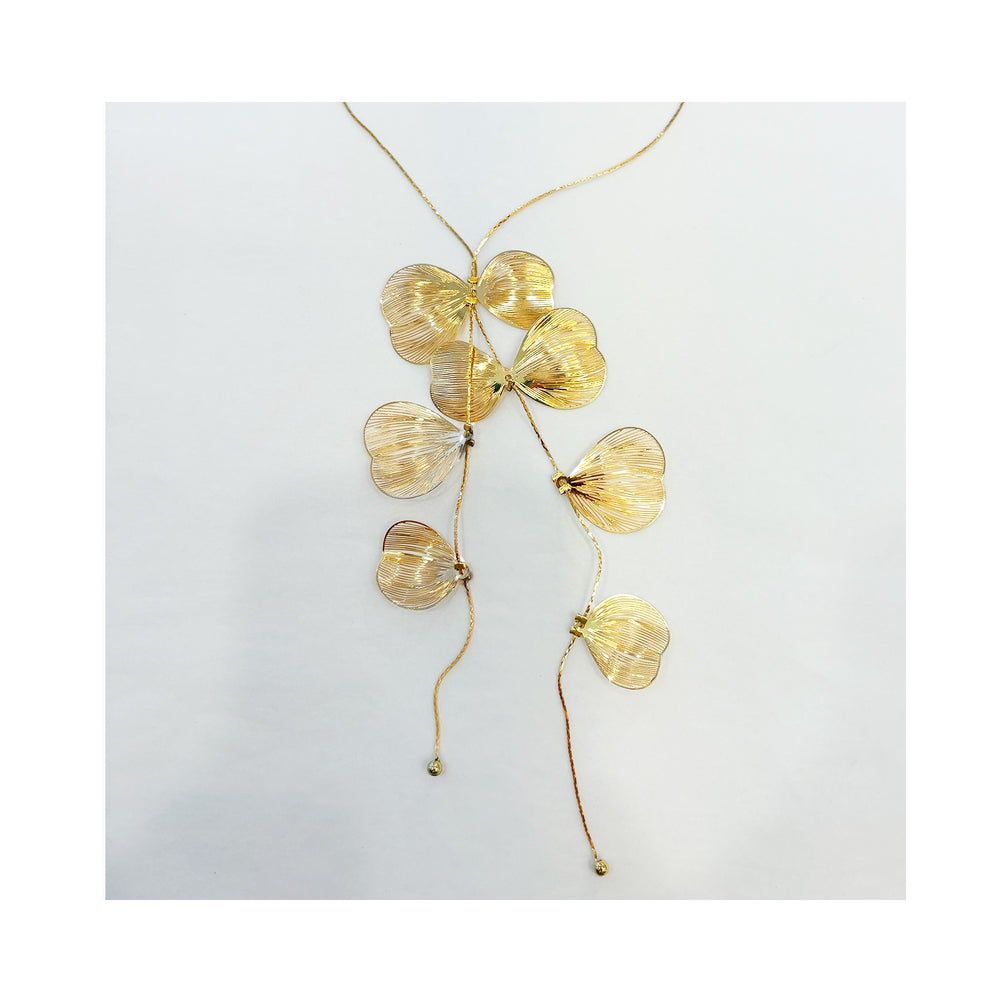 An elegant drop necklace inspired by the graceful ginkgo leaf. Delicately textured gold-toned leaves cascade in a light, flowing design that catches the light beautifully. A refined statement piece, perfect for both everyday wear and special occasions.