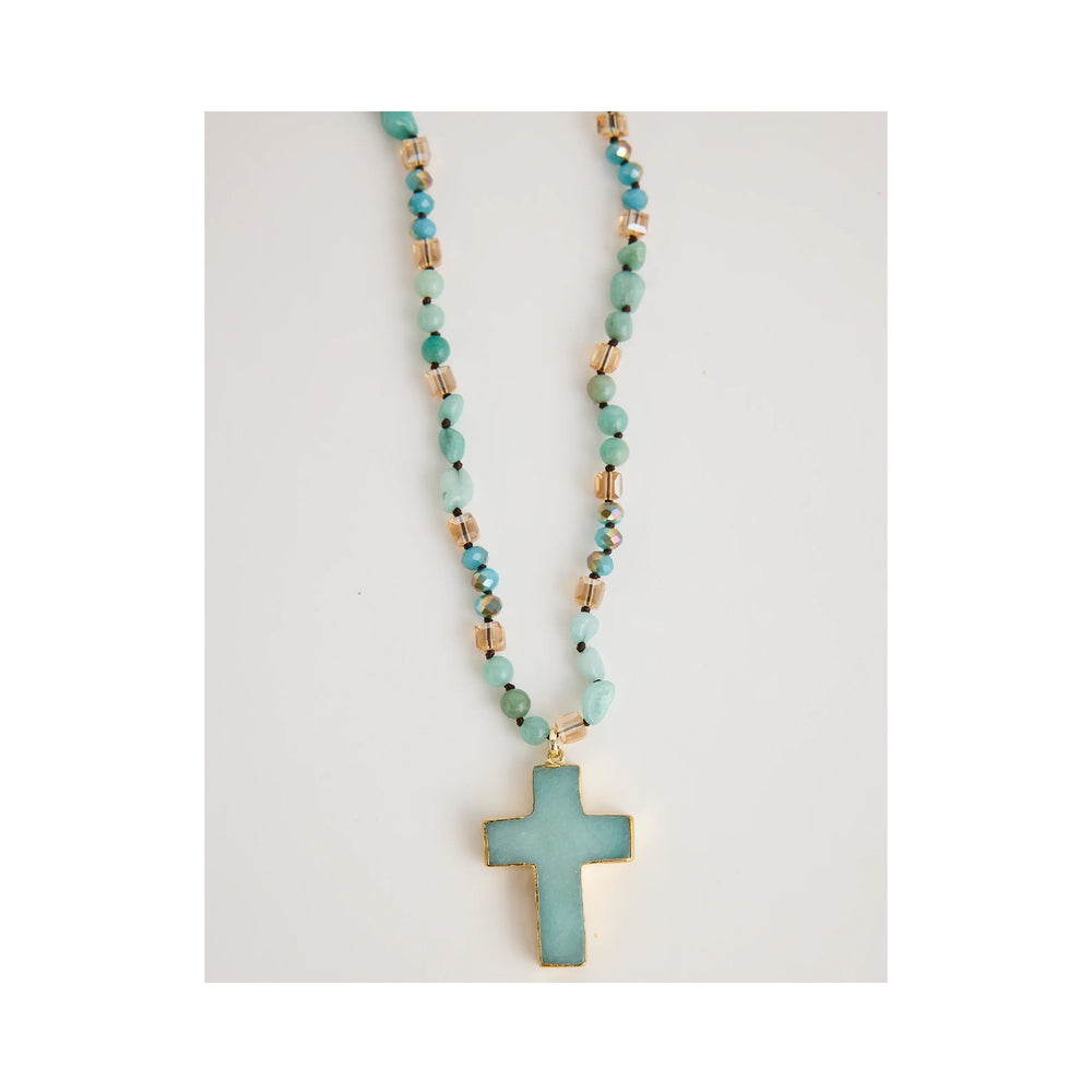 Bring a subtle, natural elegance to any outfit with the Peron Necklace. Featuring a stone cross pendant framed in a gold-toned outline, this necklace balances classic charm with a modern, understated vibe. The beaded chain, made with neutral earth-toned stones, adds a soft, organic touch that feels effortless and versatile.