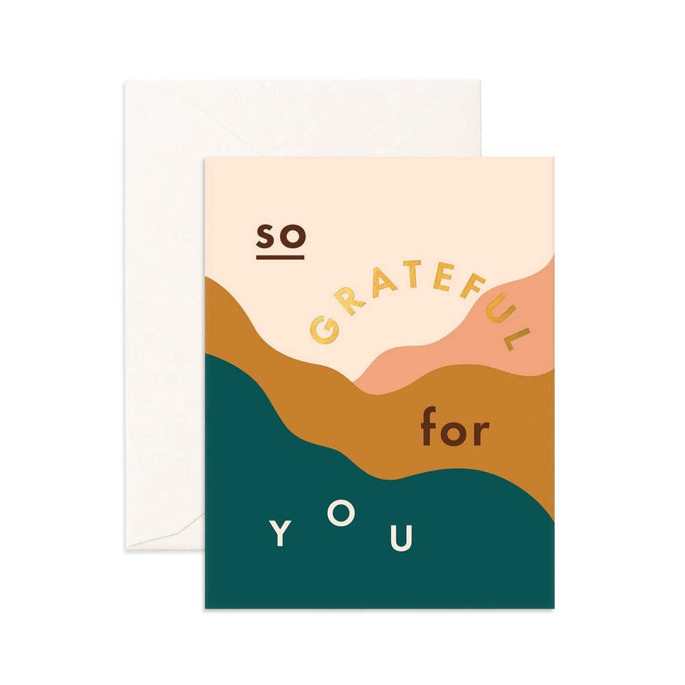 108 x 140mm / 4.25 x 5.5 inches. Material: Uncoated Card Stock. Process. Full-color + Foil Stamp. Foil: Gold. Features: Blank Interior. Envelope: Cream. Origin: Made in Australia