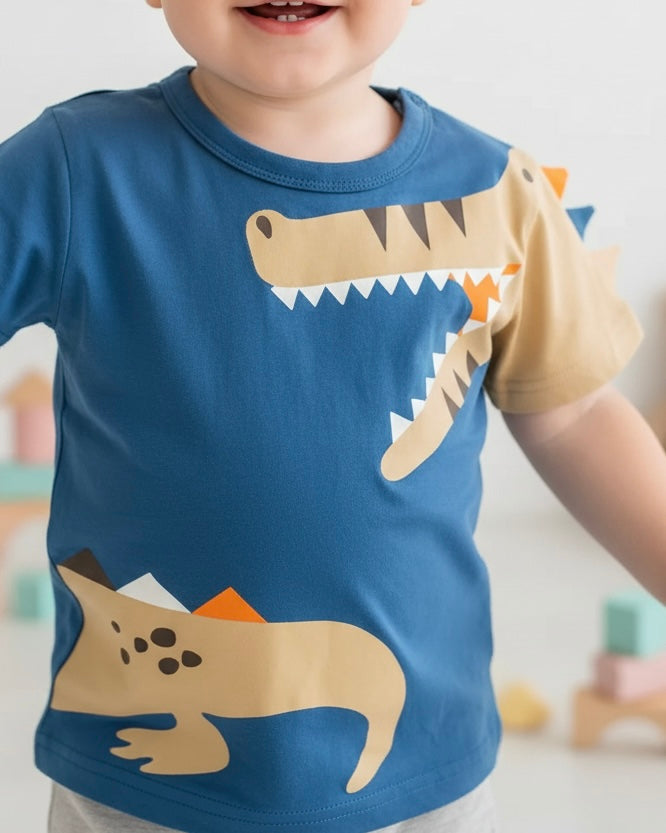 Featuring a royal blue background, this tee is made for those in love with all things wild side with its big toothy grinning croc! It has a fun detail on the should of the croc's spikes popping off the top, really bringing it to life. Made of soft material designed to be worn all the time on all life's adventures!
