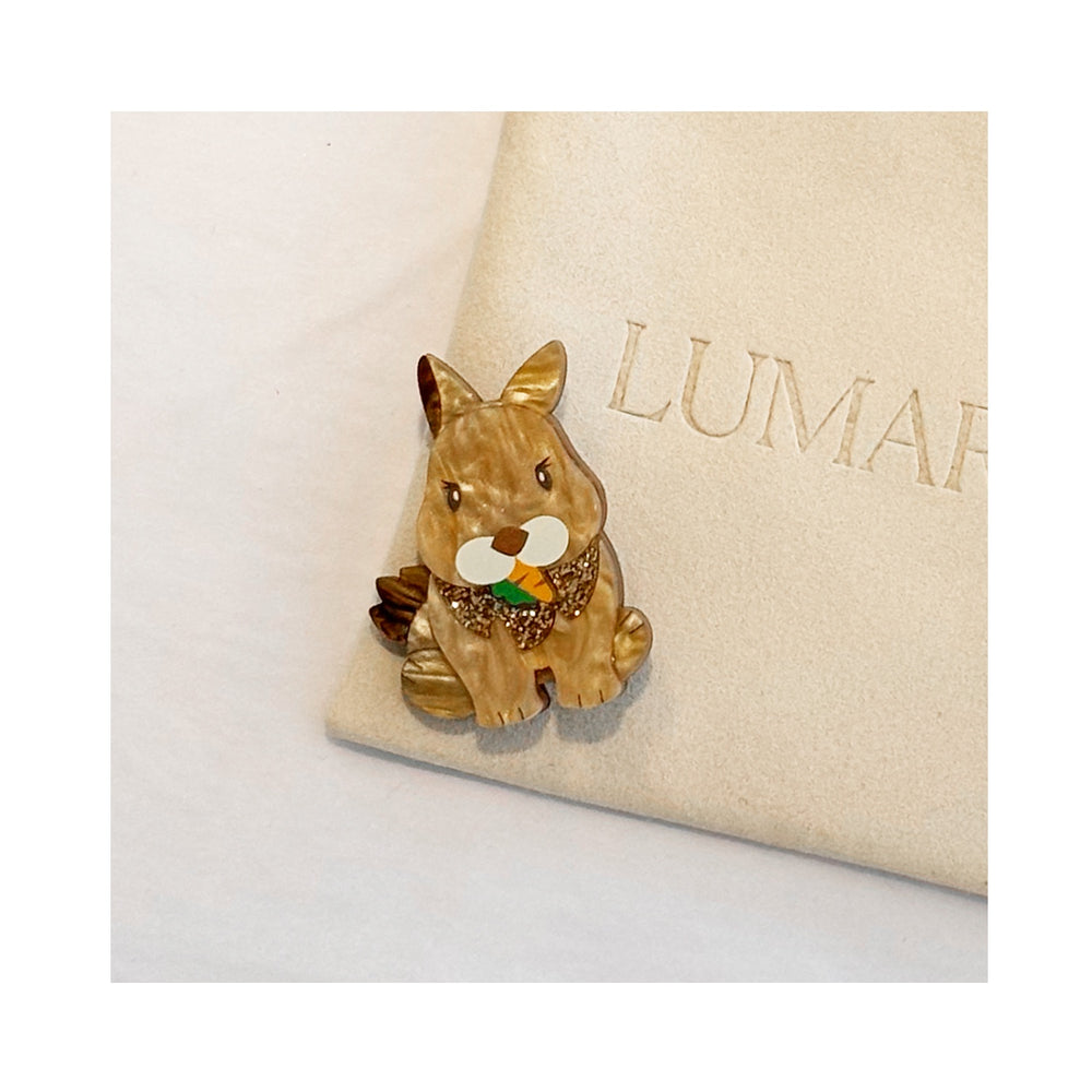 Munching on a carrot, this bunny is showing off its sparkles and is just too cute to ignore! With is pearly sheen material and the gold sparkles, this brooch will stand out and shine as part of any outfit or on any clothing, it will be its own adorable talking point.