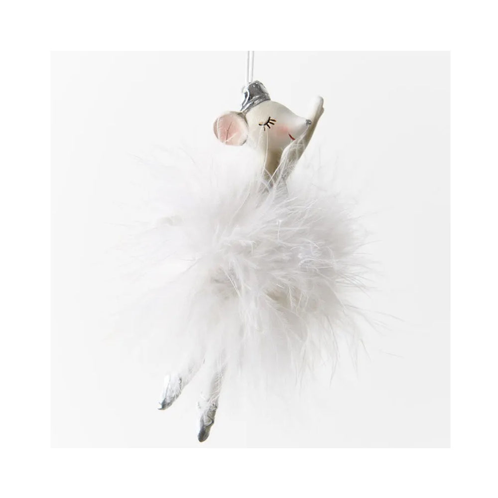 Experience the whimsy of the holidays with our White Ballet Mouse Christmas Ornament. Dressed in a tutu and ballet shoes, this adorable mouse brings a delightful touch of charm and playfulness to your festive decor. A merry addition to your Christmas celebrations.