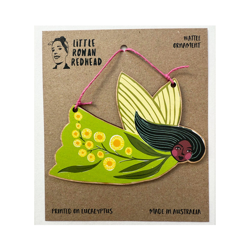 Bring a touch of native Australian beauty to your festive season with a wooden Christmas fairy adorned with a native wattle design. Made from sustainably sourced eucalyptus wood and strung with natural hemp twine, this ornament is both eco-friendly and durable, designed to last for years.