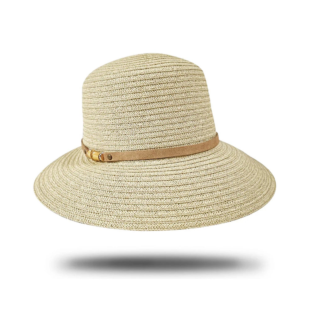 Made from braided Toyo, this everyday summer style is packable and suitable for travelling. This popular women's hat combines looks with practicality and its inner elasticated Velcro band allows for easy size adjustment