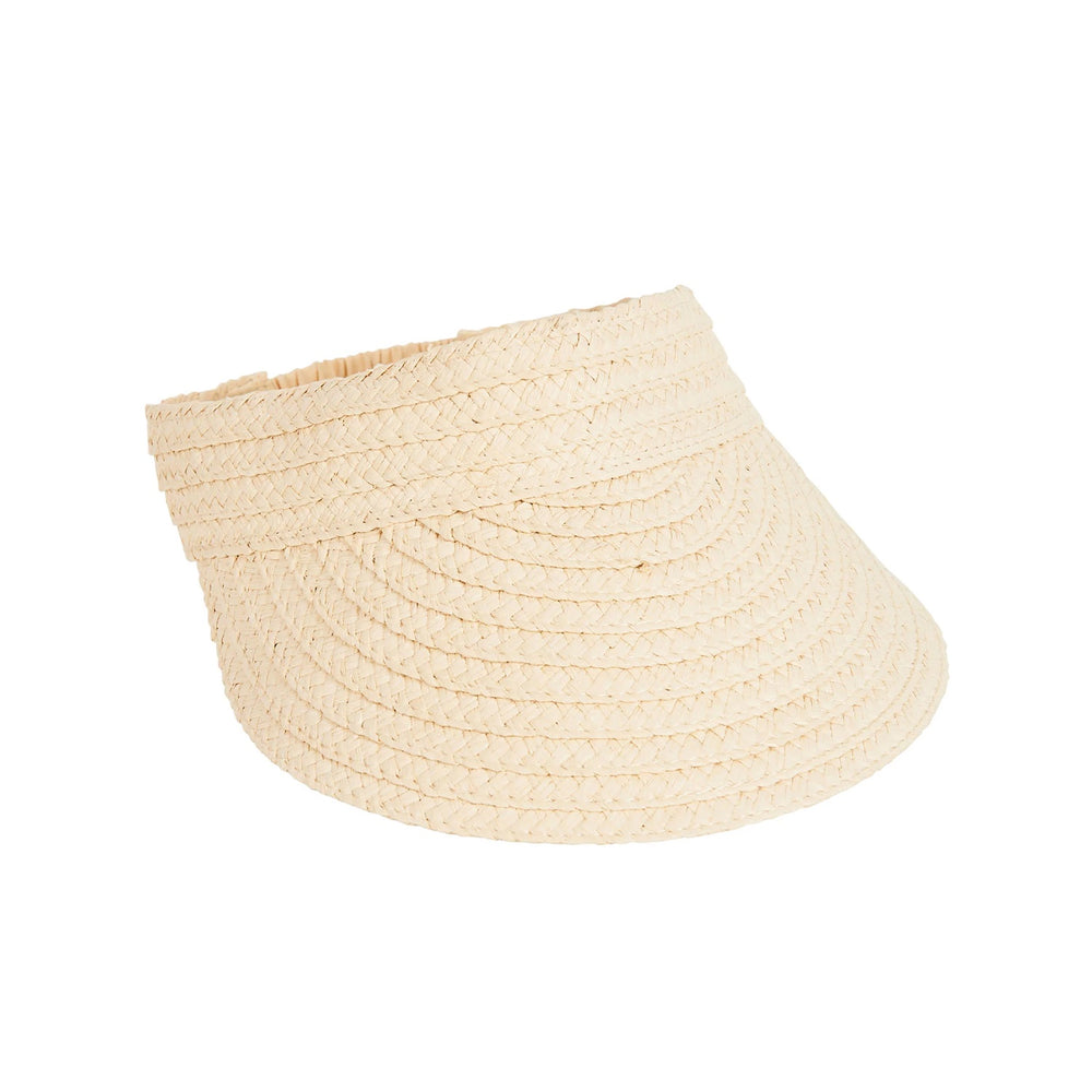 An adjustable sun visor made for warm weather days. Crafted from natural woven materials with an elasticated back for comfort and ease.