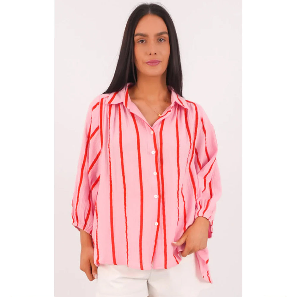 EBBY AND I - TOP MONTE CARLO STRIPE SHIRT - PINK & RED
