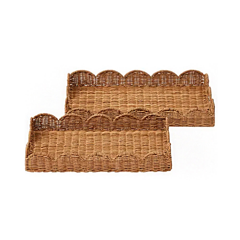 Handwoven from natural rattan, the Tray Pettine Rectangle – Large features a softly scalloped edge and timeless texture. Perfect for serving, styling a coffee table, or organizing everyday essentials, it adds warm, effortless charm to any space. Durable, lightweight, and beautifully crafted for both function and display.